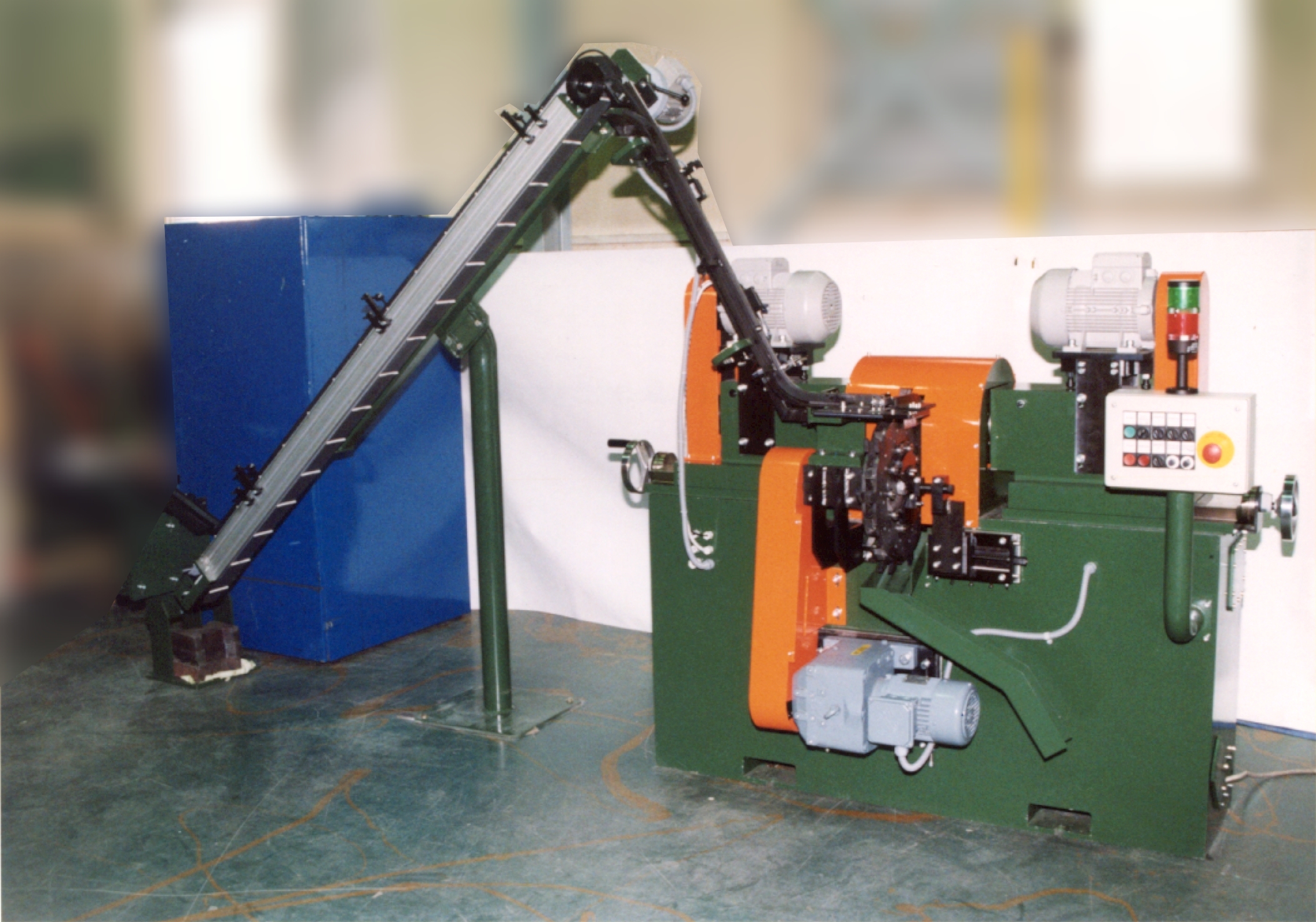 The machine is intended for simultaneous final machining of the two brush surfaces defining the “r” dimension of the brush. The machine is located on the end of line for machining four sides of the brush body.