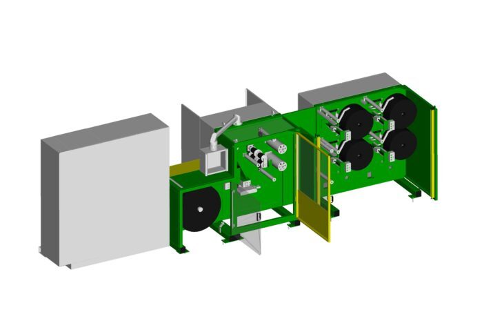 The equipment is intended for slitting of rubbersed textile cords named „cap ply or spiral breaker“. The equipment can be equipped with one or two let off stations and variable number of winding stations up to 18 positions. The use of two let off stations reduces shut-down during loading of input slit material. Further, it can be equipped with one, two or three winding stations. It means that input material is slit into 6, 12, or 18 parts. It is required to have width of input material 60, 120, or 180 millimetres (at the width of „spiral“ 10mm).
